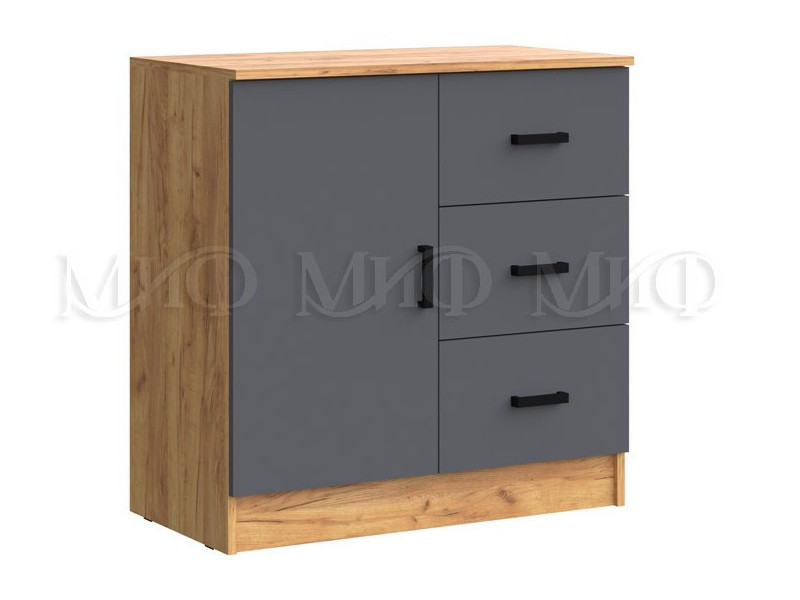 - Комод с 3-мя ящиками и дверью Бася Миф Графит
