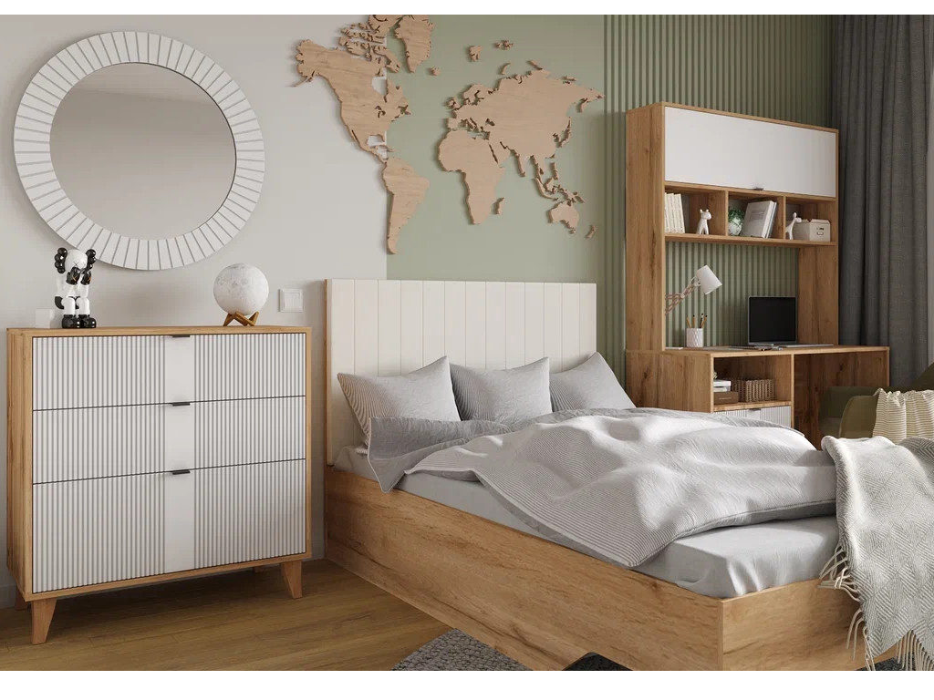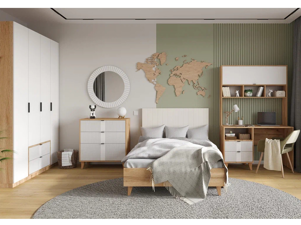 Цена за комплект: Кровать 900 , Пенал (2шт), Шкаф 2 двери, Комод, Зеркало, Стол письменный, Надставка