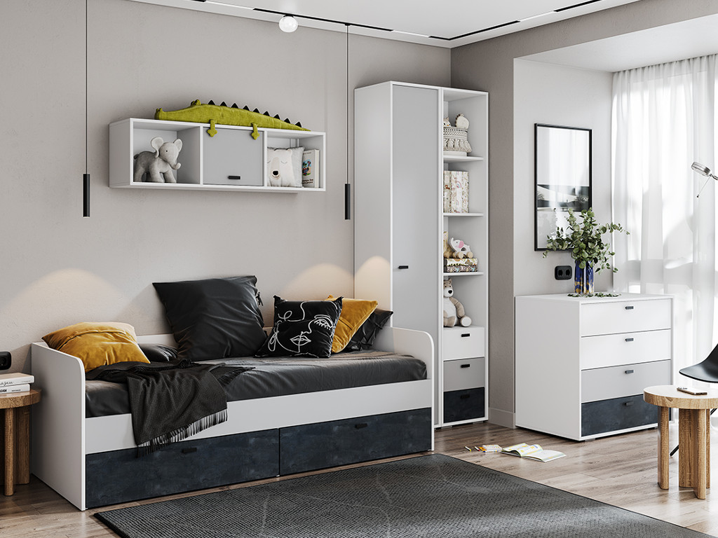 Цена за комплект: КР2Я-800 Кровать с ящками, ШК2Я-800 Шкаф, ПЛ-1200 Полка, СТП-1200 Стол письменный