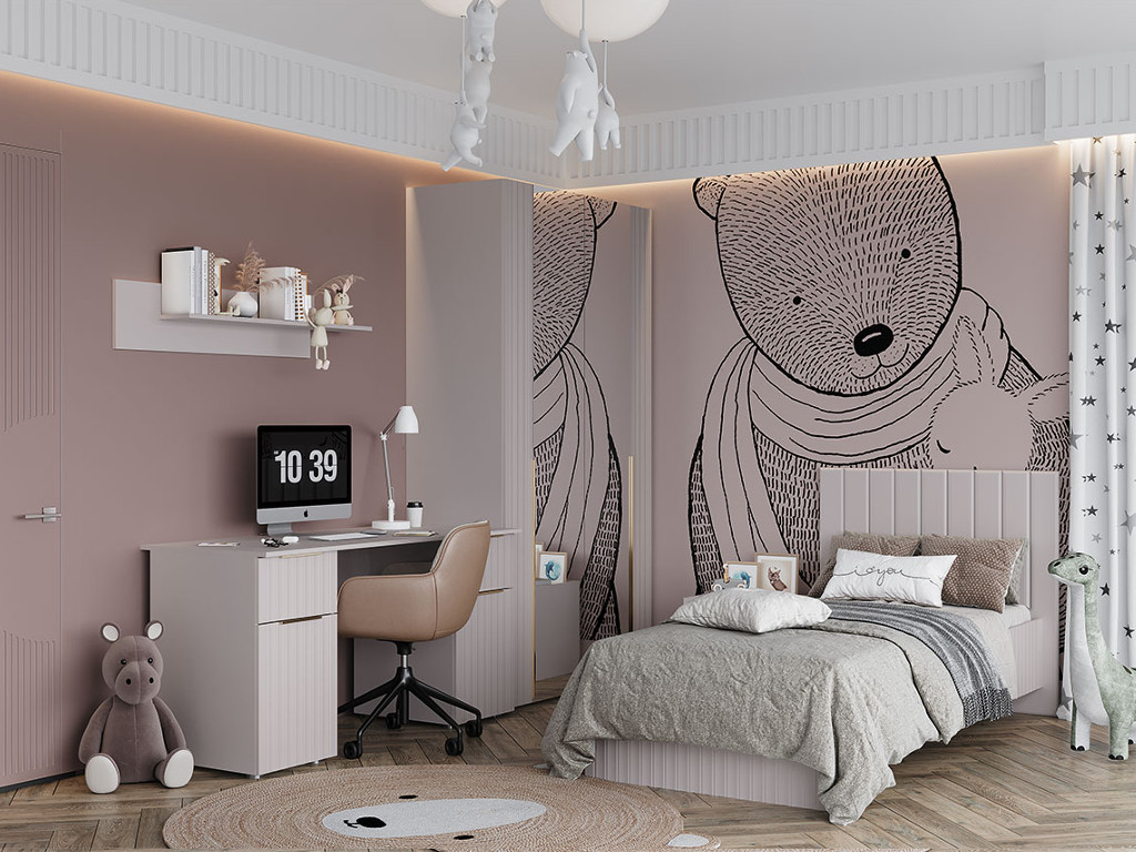 - Декор: Фрезеровка на фасадах, спинках кроватей, царгах