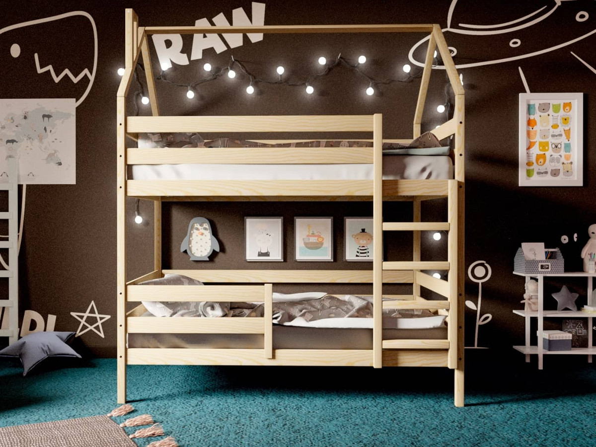 Двухъярусная кровать-домик без покраски 80х160 см