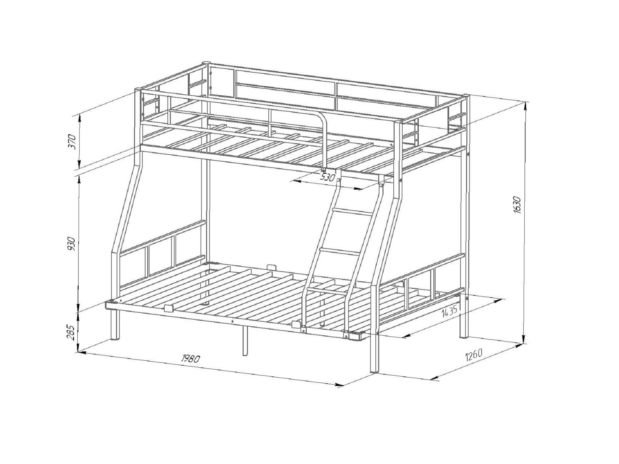 Ширина нижнего спального места: 1400х1900 мм
