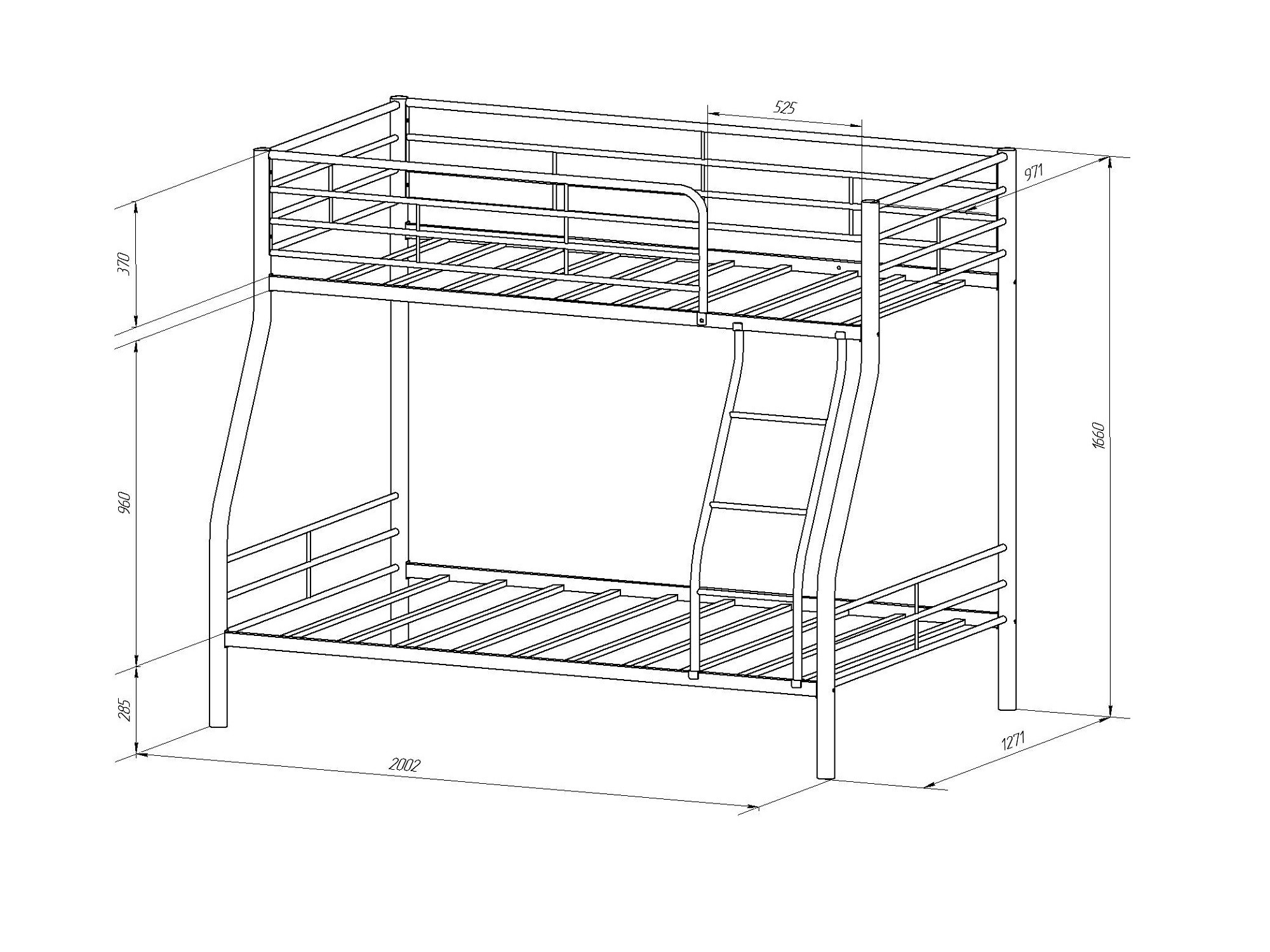 Ширина нижнего спального места: 1200х1900 мм