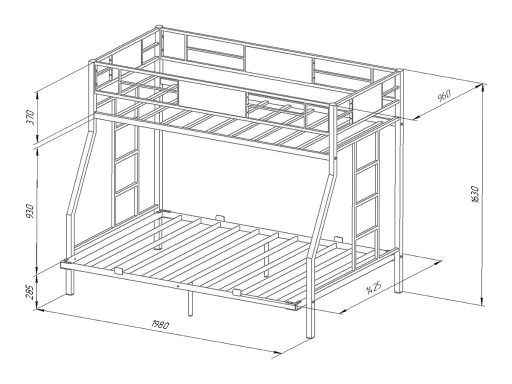 Ширина нижнего спального места: 1400х1900 мм