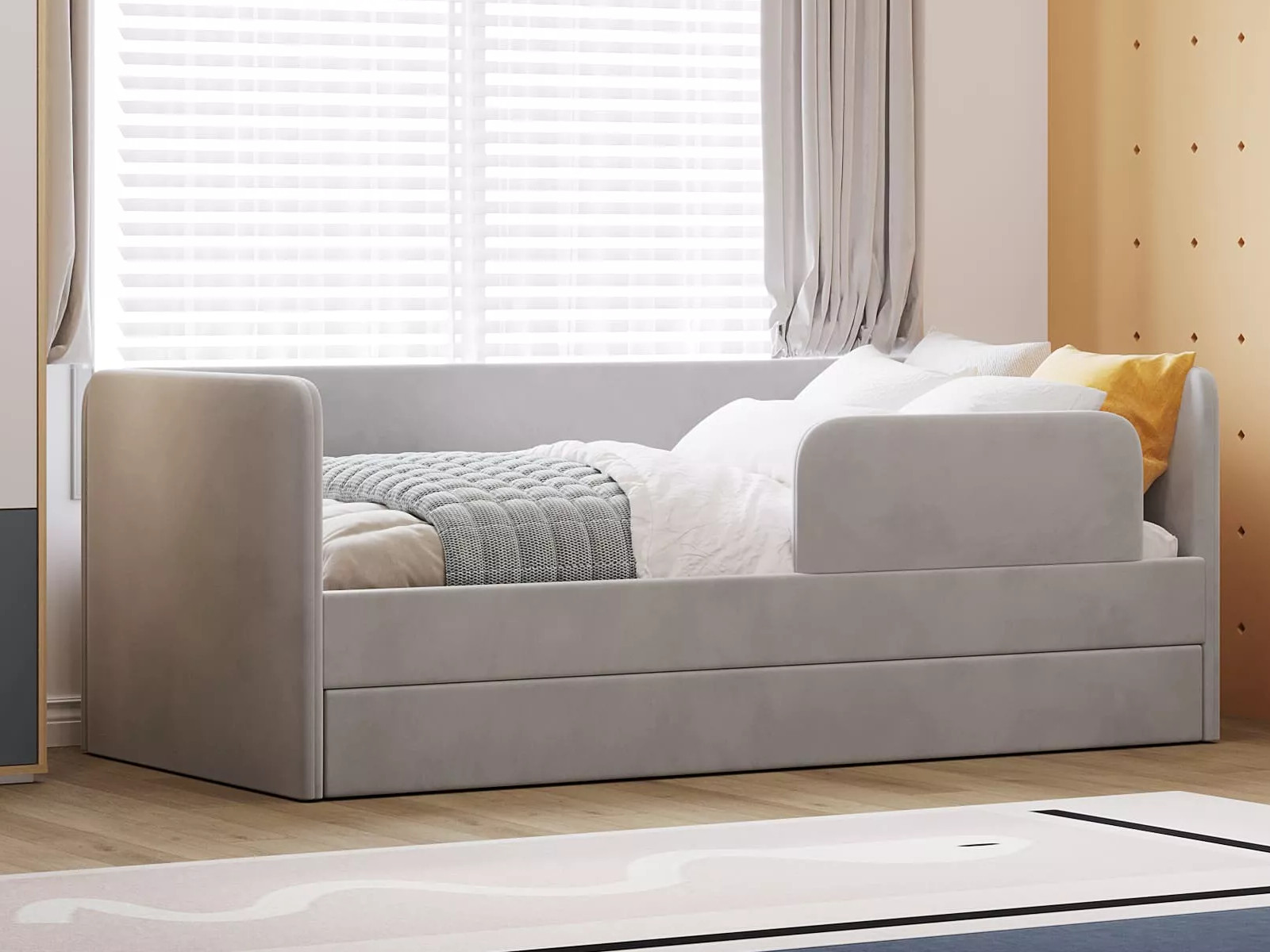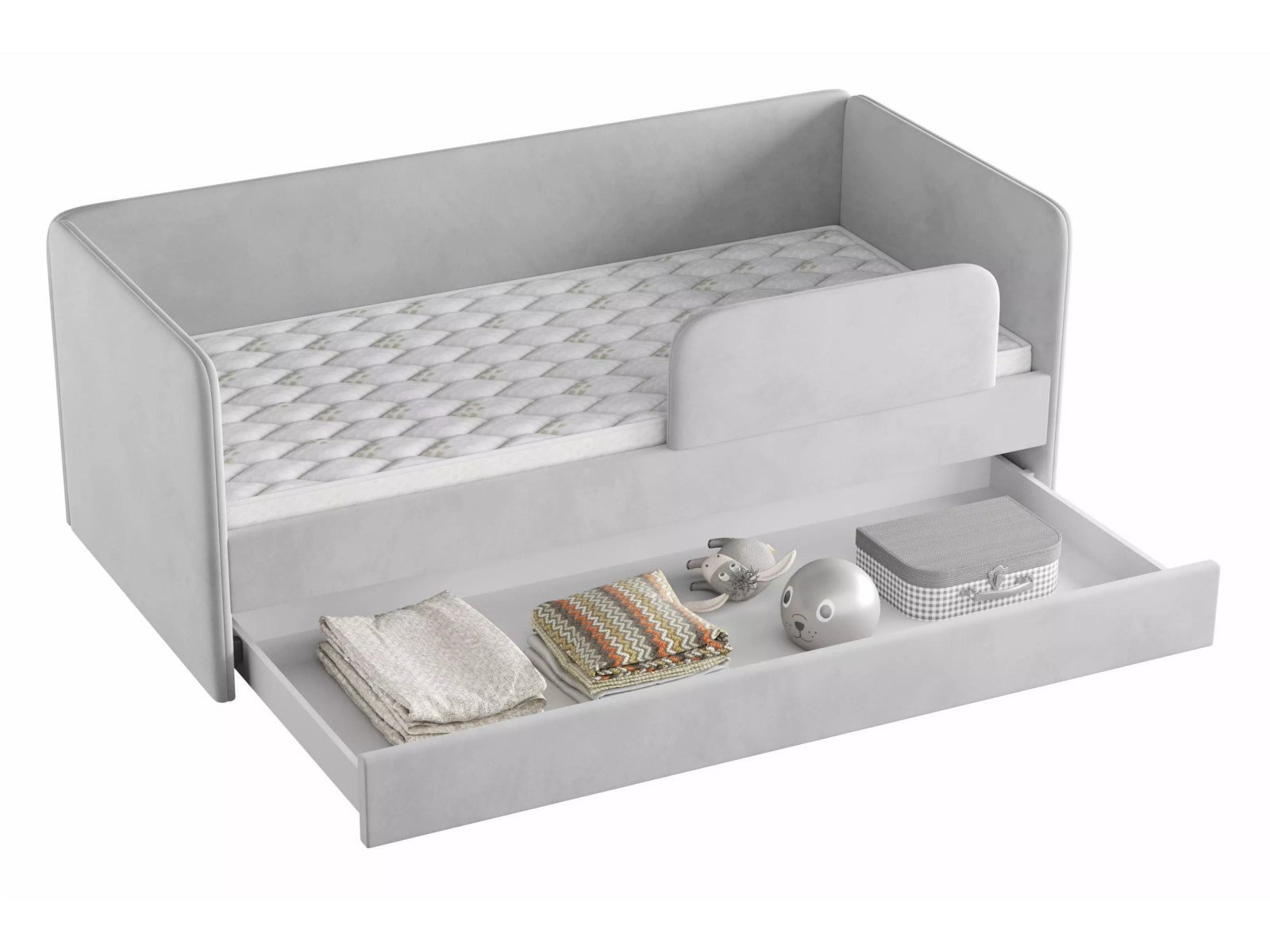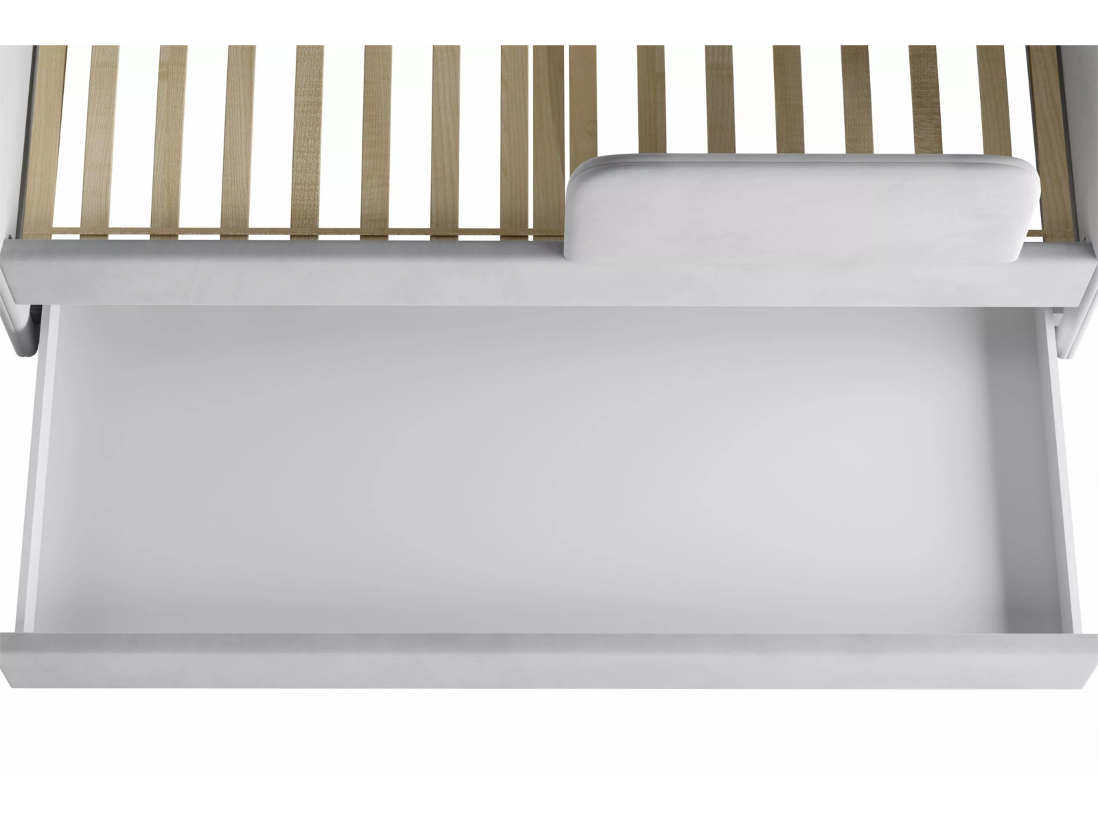 Выдвижной ящик можно использовать в качестве дополнительного спального места (разместив дополнительный беспружинный матрас 1900 х 800 х 140 мм) или для хранения белья и игрушек.