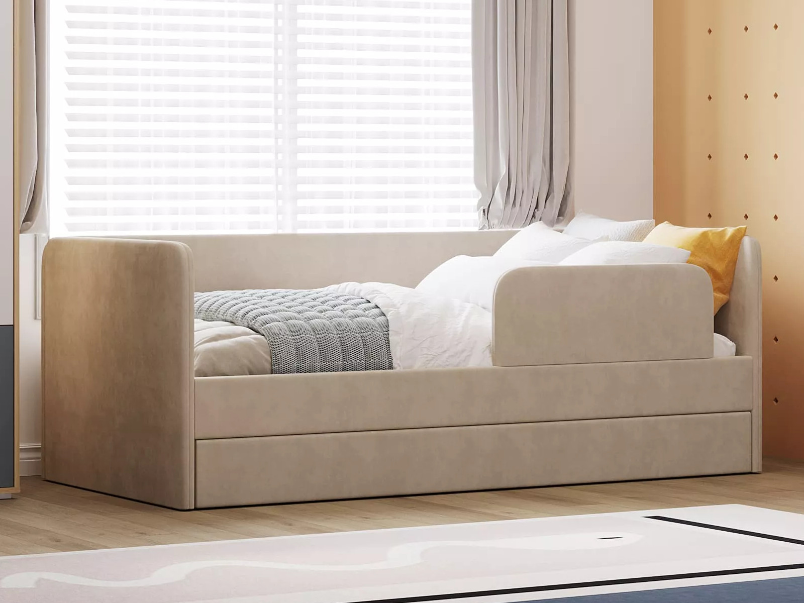 Выдвижной ящик можно использовать в качестве дополнительного спального места (разместив дополнительный беспружинный матрас 1900 х 800 х 140 мм) или для хранения белья и игрушек.