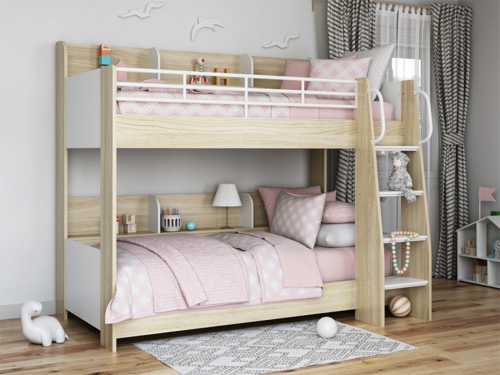 - Кровать Соня 5 правая ясень шимо светлый-белый