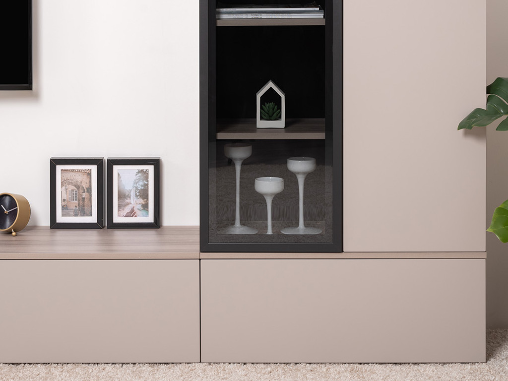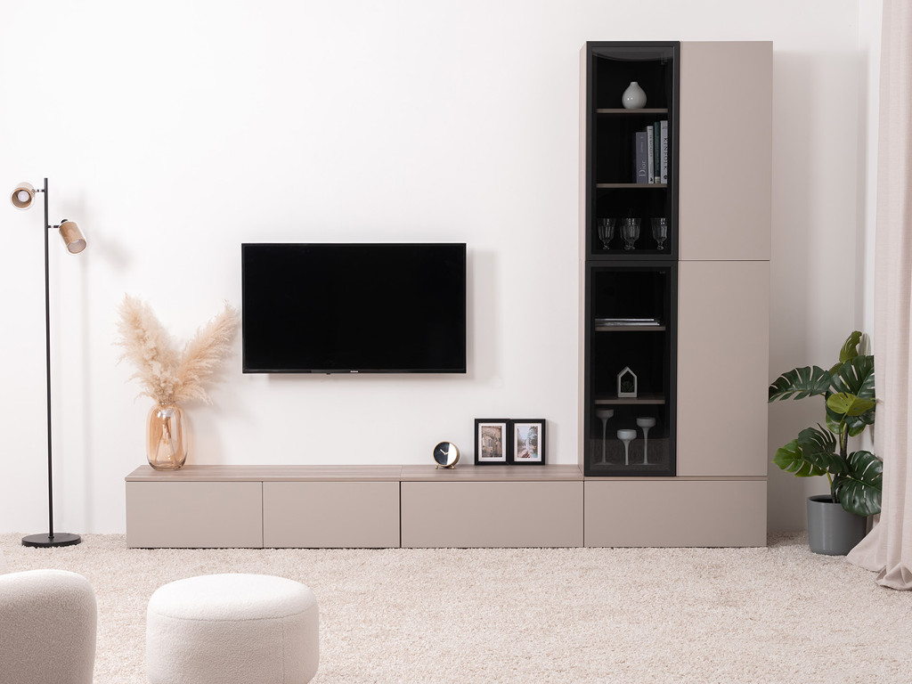 Цена за комплект: Тумба под ТВ 16.54.01 (2 шт), Тумба под ТВ 16.54.02, Шкаф навесной 16.322.01 (2 шт), Шкаф-витрина навесной 16.322.02(2 шт)