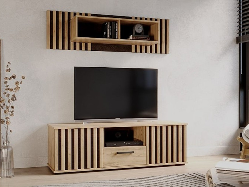 Габариты ТВ тумбы: 1372(ширина) х 420(глубина) х 432(высота) мм.
