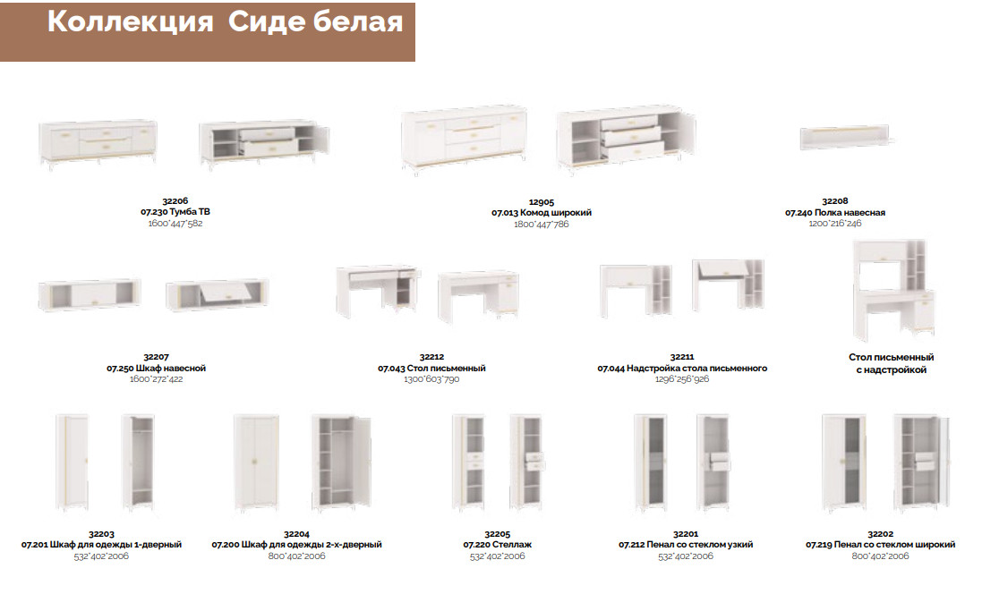 Цена за комплект: Пенал со стеклом узкий (2шт), Комод широкий