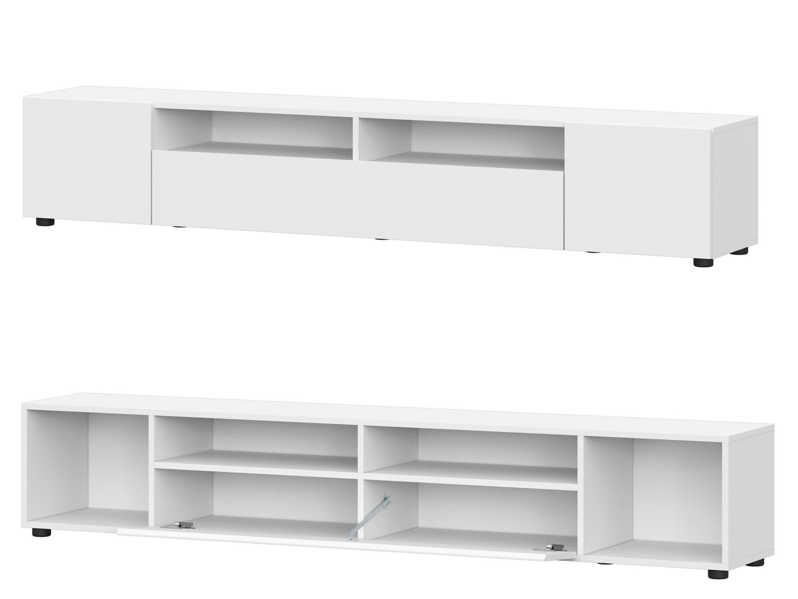 Тумбу можно устанавливать стационарно на пол (для этого нужно прикрутить опоры) либо использовать как навесную (в этом случае не устанавливают заднюю стенку, не прикручивают опоры). Тумба имеет две распашные створки и одну барную створку посередине.