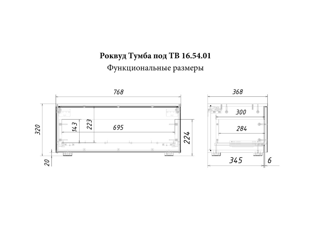 Размер ШхГхВ: 768 x 368, В 320 мм
