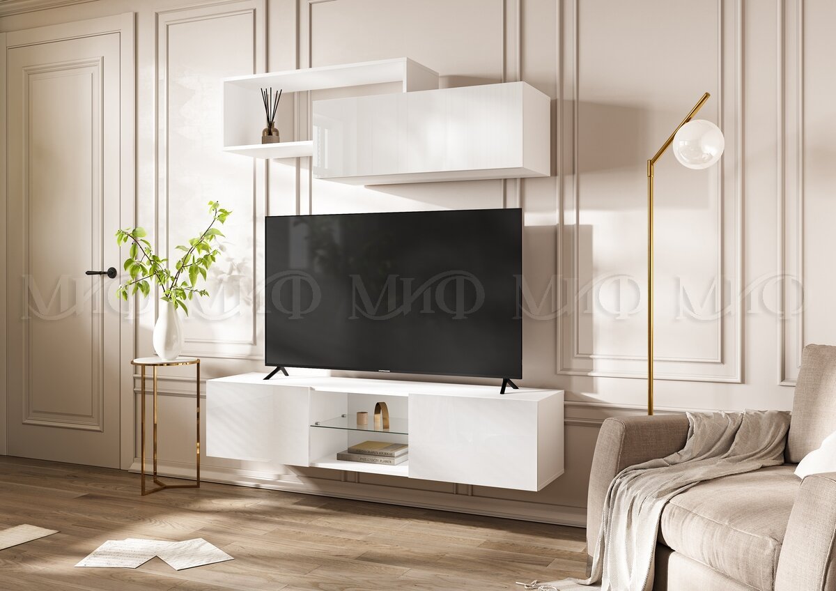 - Тумба ТВ подвесная 1500 Норд Белый глянец, Белый