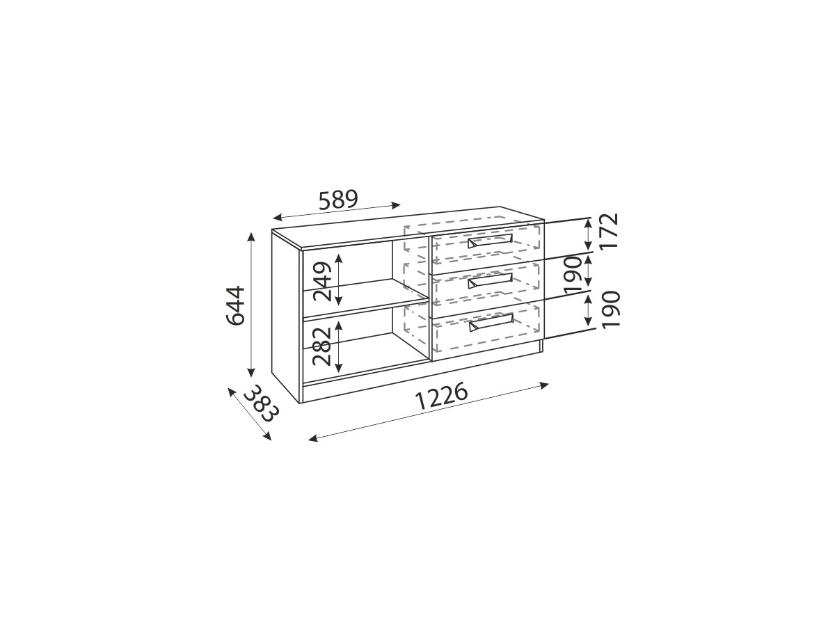 Габариты (ШхГхВ): 1226х383х644 мм