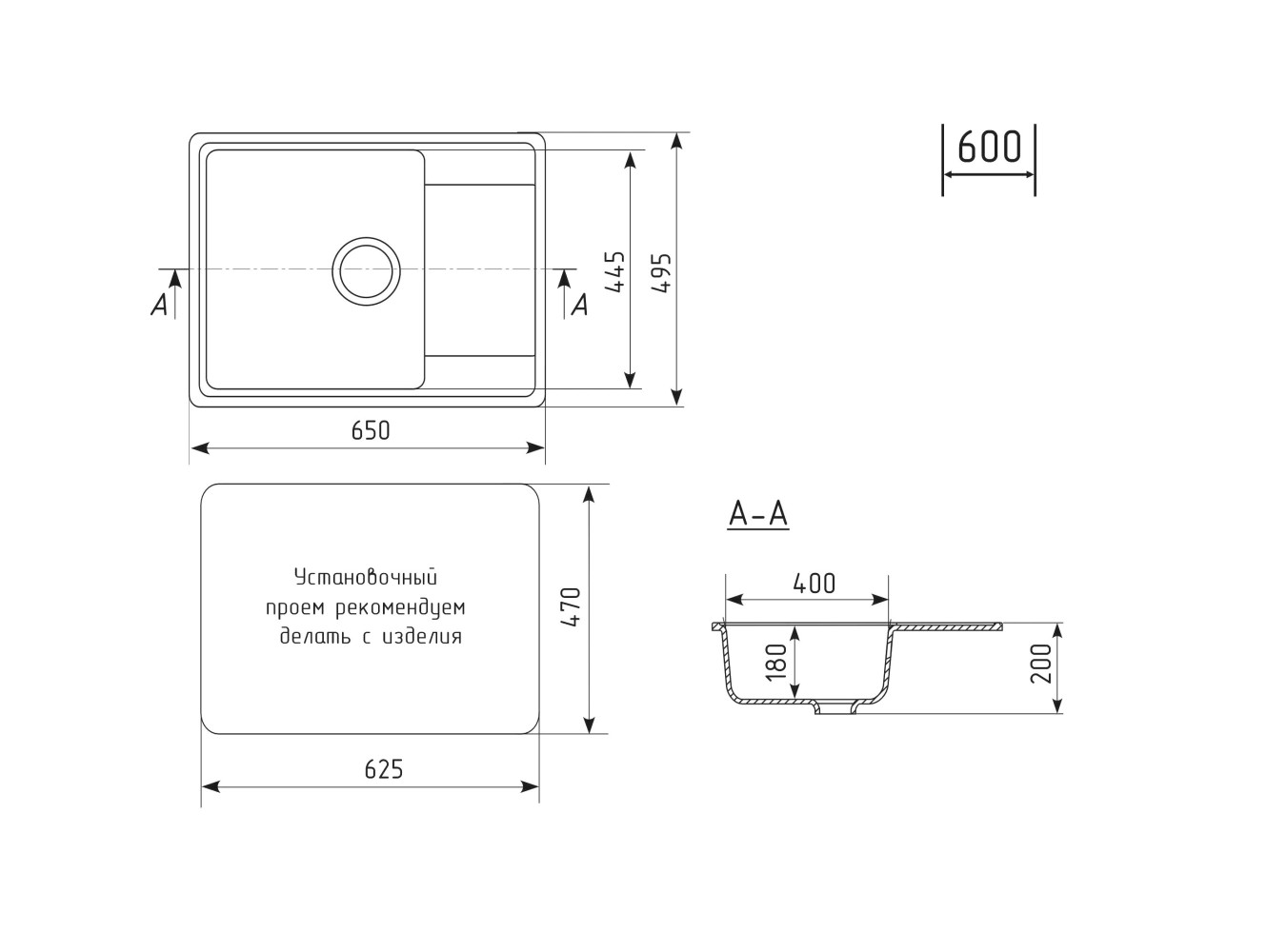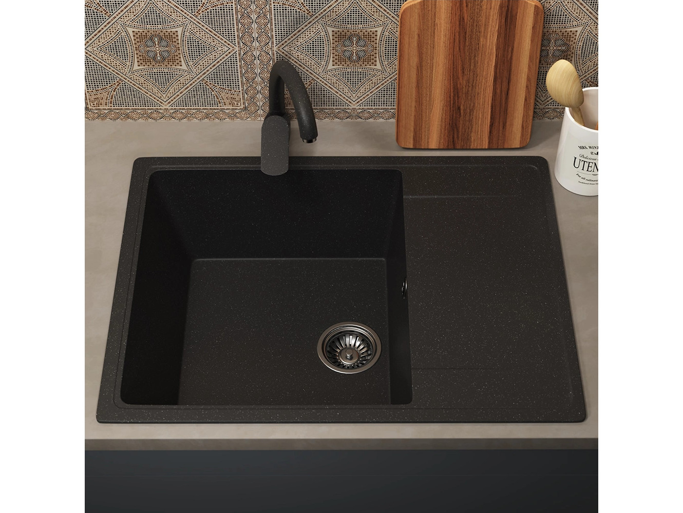 - Кухонная мойка Uperwood ECON UPD-202-004 черная матовая