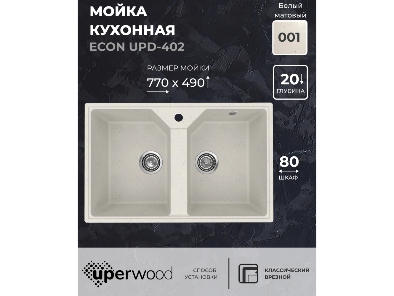 - Кухонная мойка Uperwood ECON UPD-402-001 белая матовая