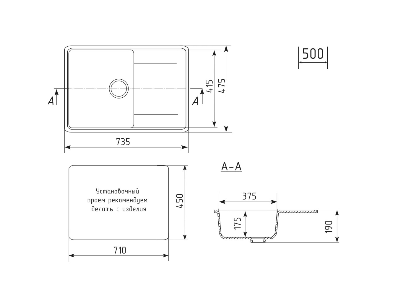- Глубина (см) 47,5