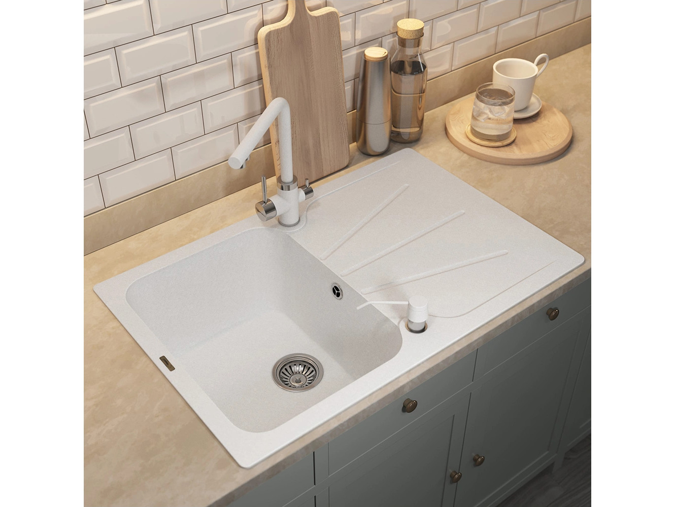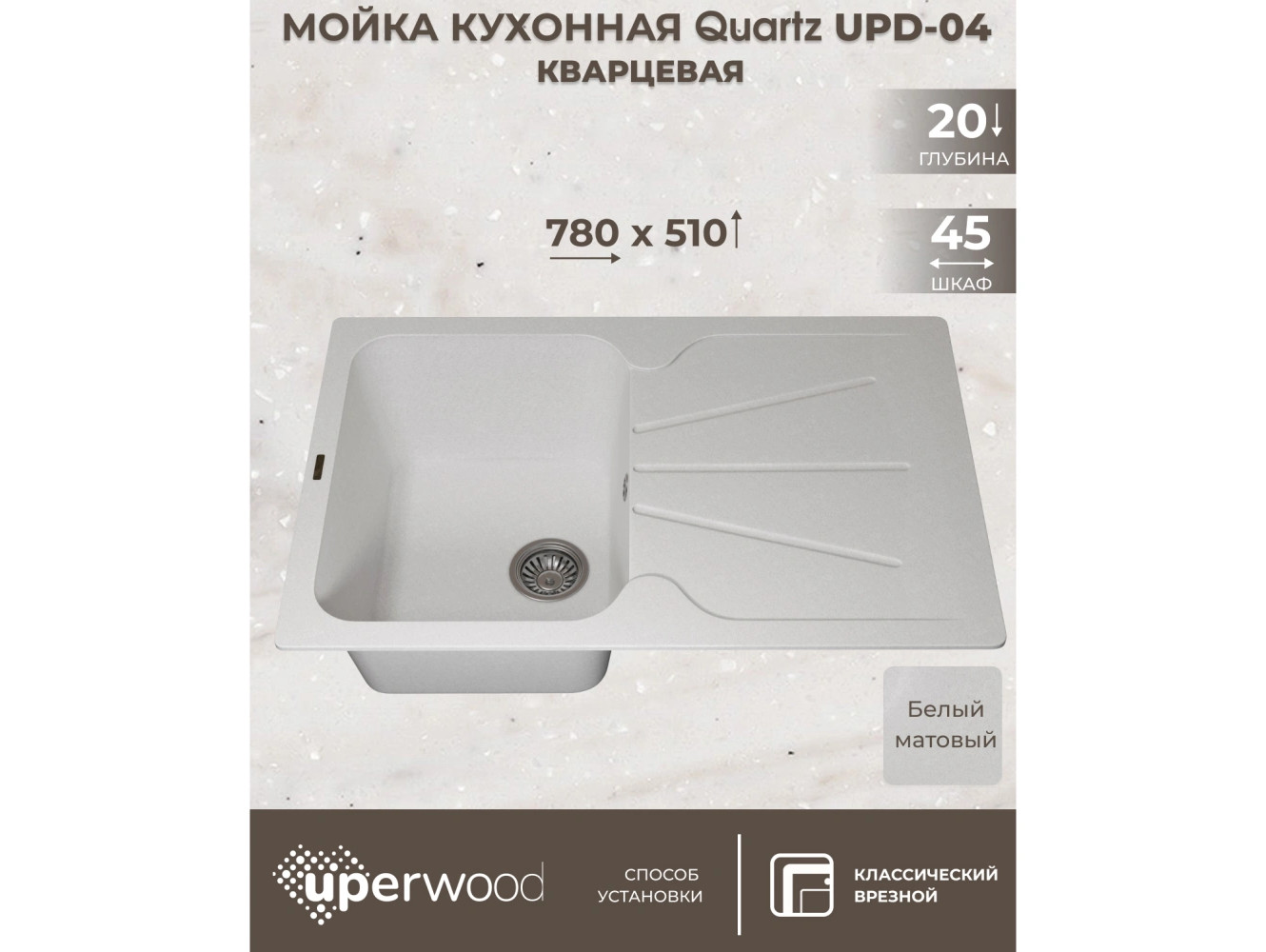 - Кухонная мойка Uperwood Quartz UPD-04-01 белая матовая