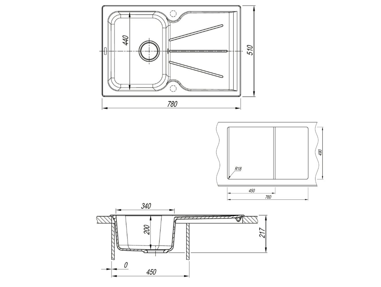 - Кухонная мойка Uperwood Quartz UPD-04-04 черная матовая