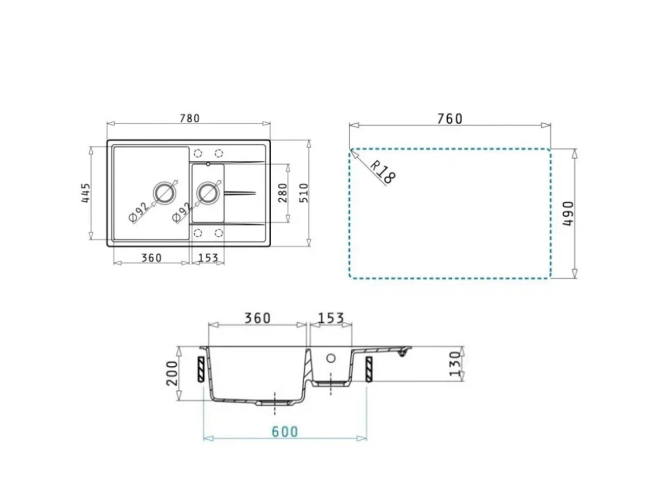 - Кухонная мойка Uperwood Quartz UPD-05-01 белая матовая
