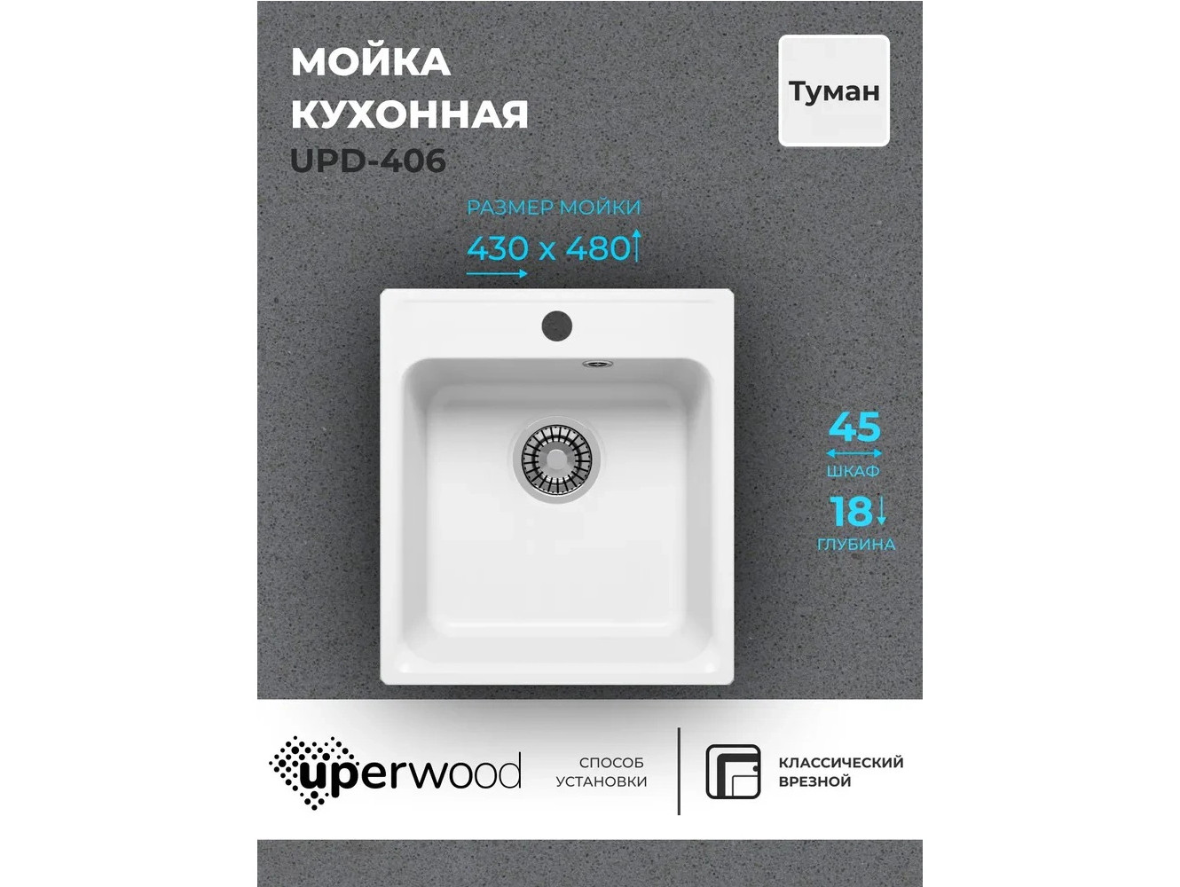 - Кухонная мойка Uperwood UPD-406 туман