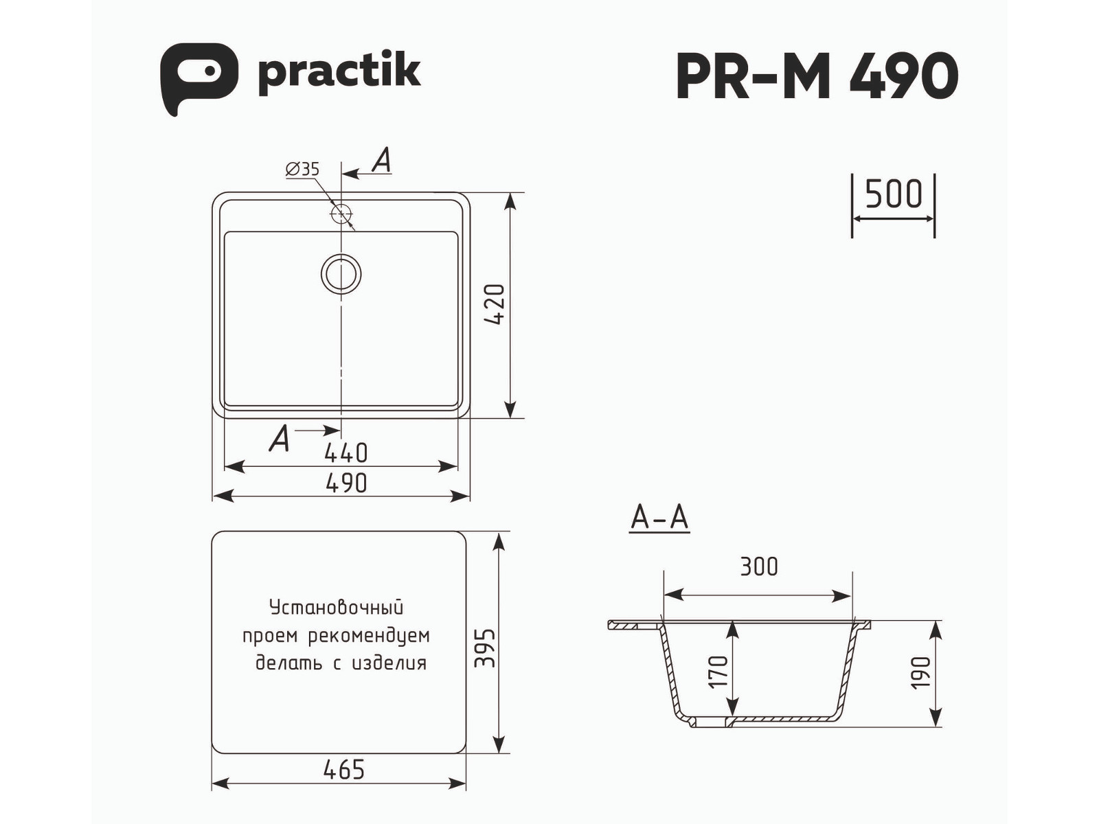 - Мойка Practik PR-M 490-004 черный оникс