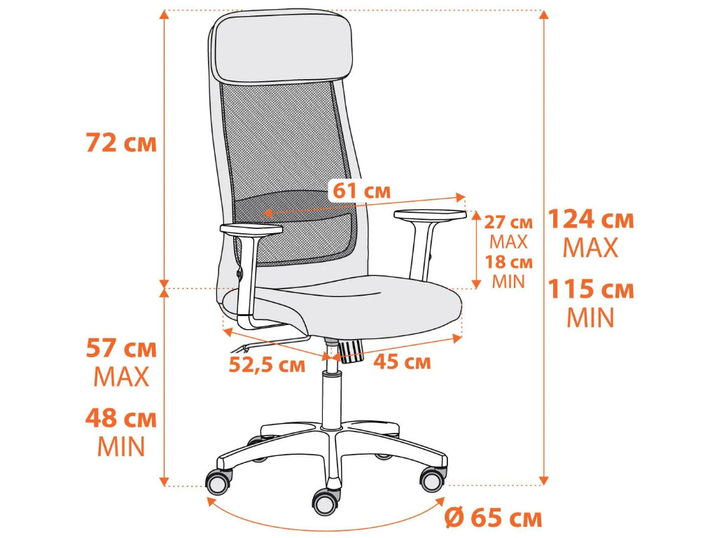 - Надежная 5-лучевая полиамидная крестовина черного цвета диаметром 650 мм