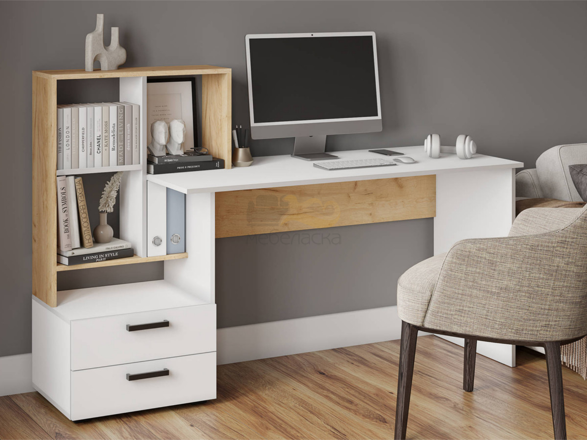 - Стол компьютерный СКМ-5 дуб крафт золотой/белый