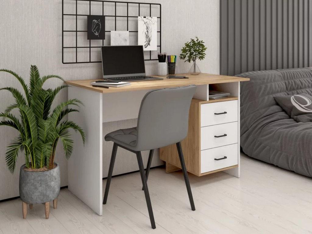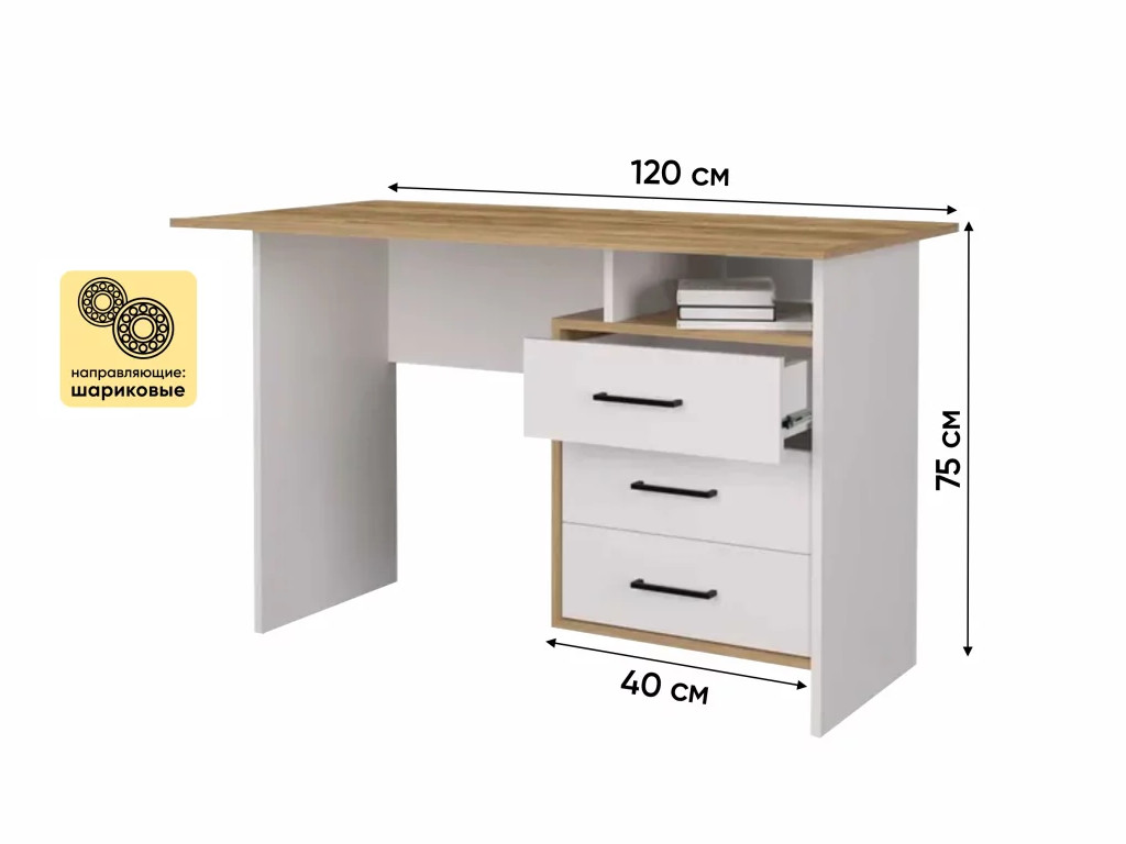 - Стол письменный Эйгер Дуб крафт золотой-Белый шагрень