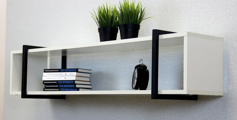 Полка металлическая ЛОФТ-12 Белый/черный матовый