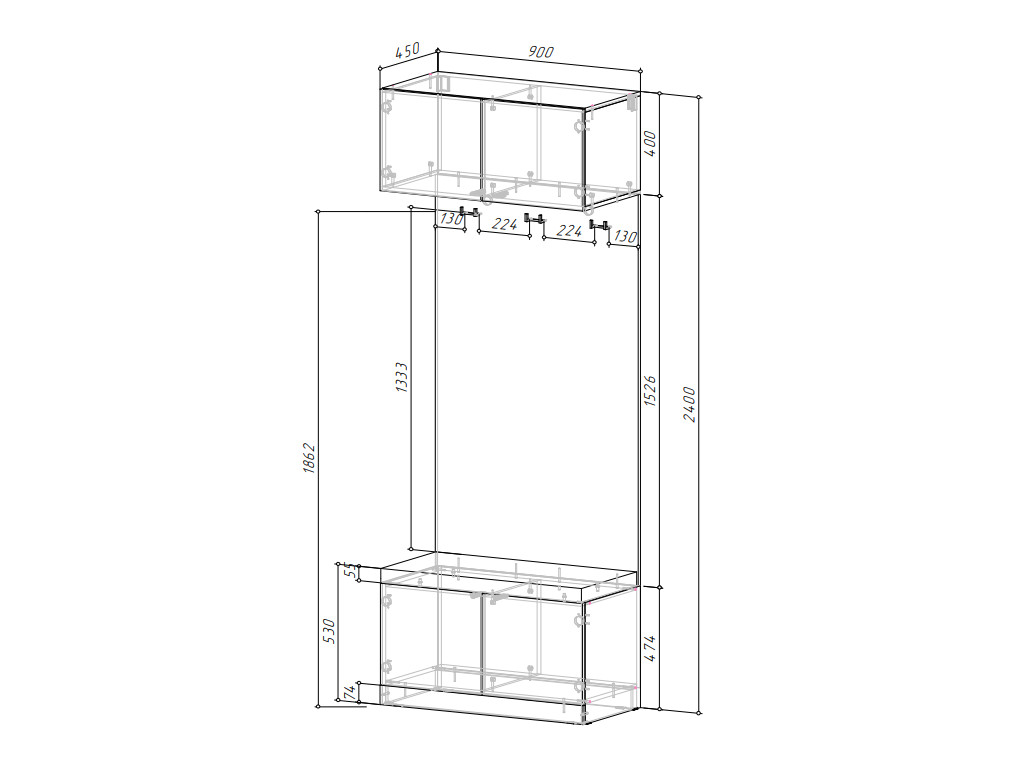 Габаритные размеры: Д.900 х В.2400 х Г.450 мм.