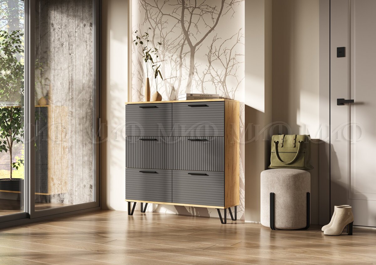 - Обувница (1000) Флэш Браш Графит, Дуб Крафт