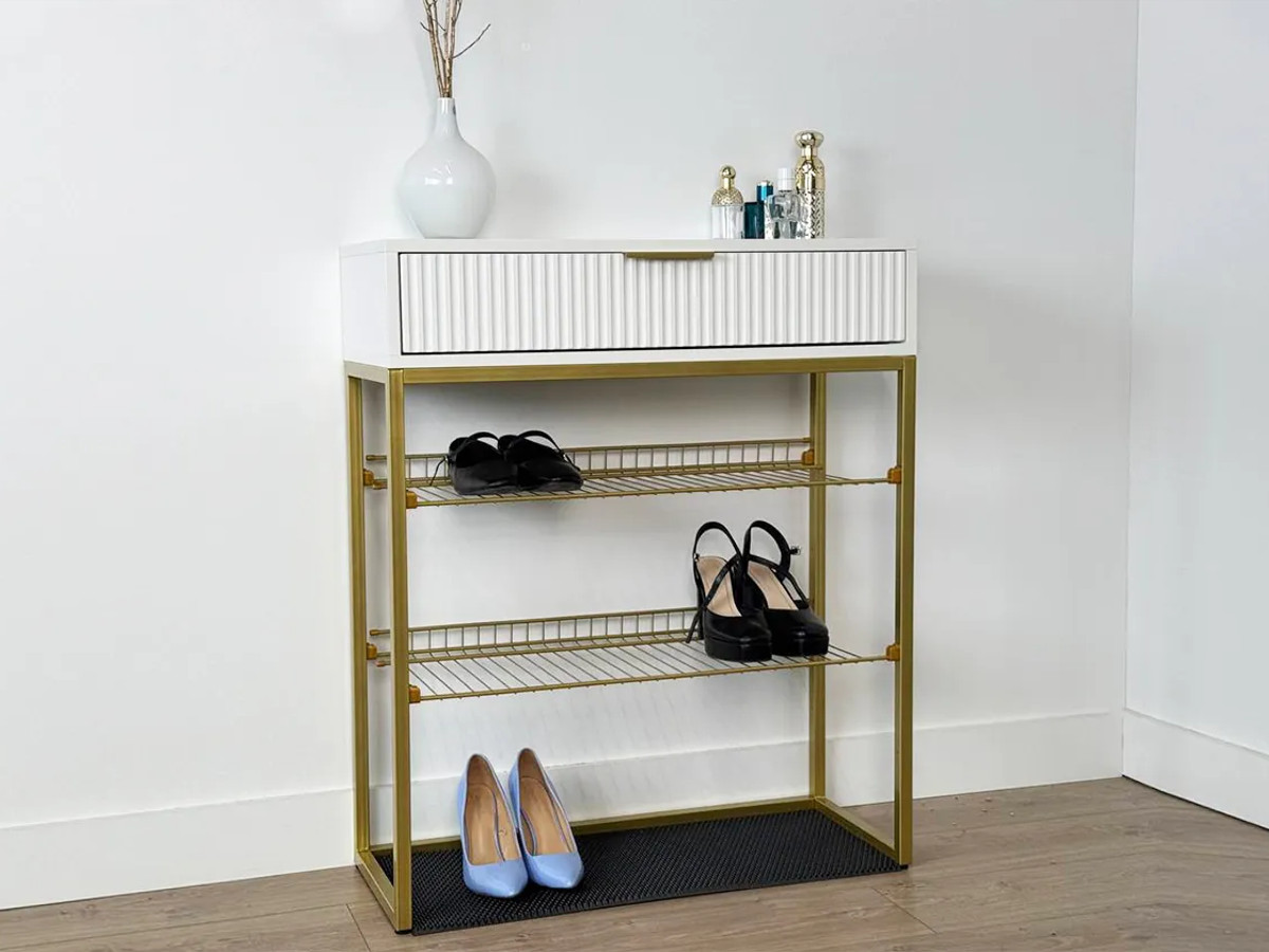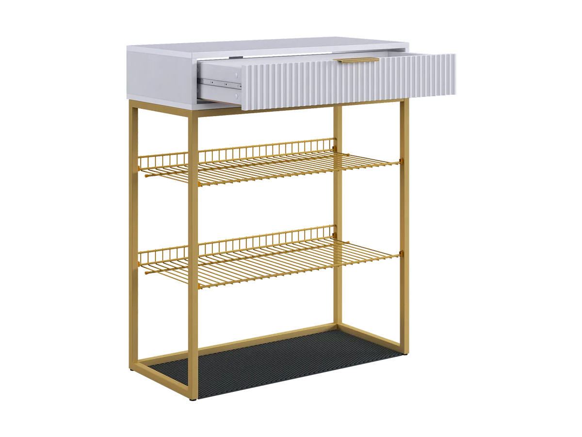 - Обувница Вельвет белое дерево/белый матовый/золото