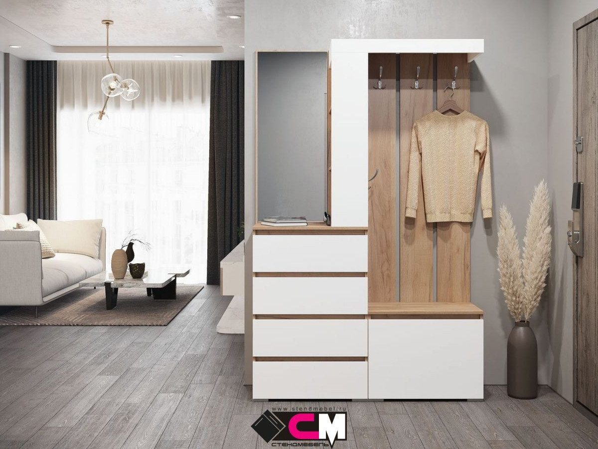 - Прихожая Хелен ПР-01 Дуб Крафт золотой/Белый шагрень