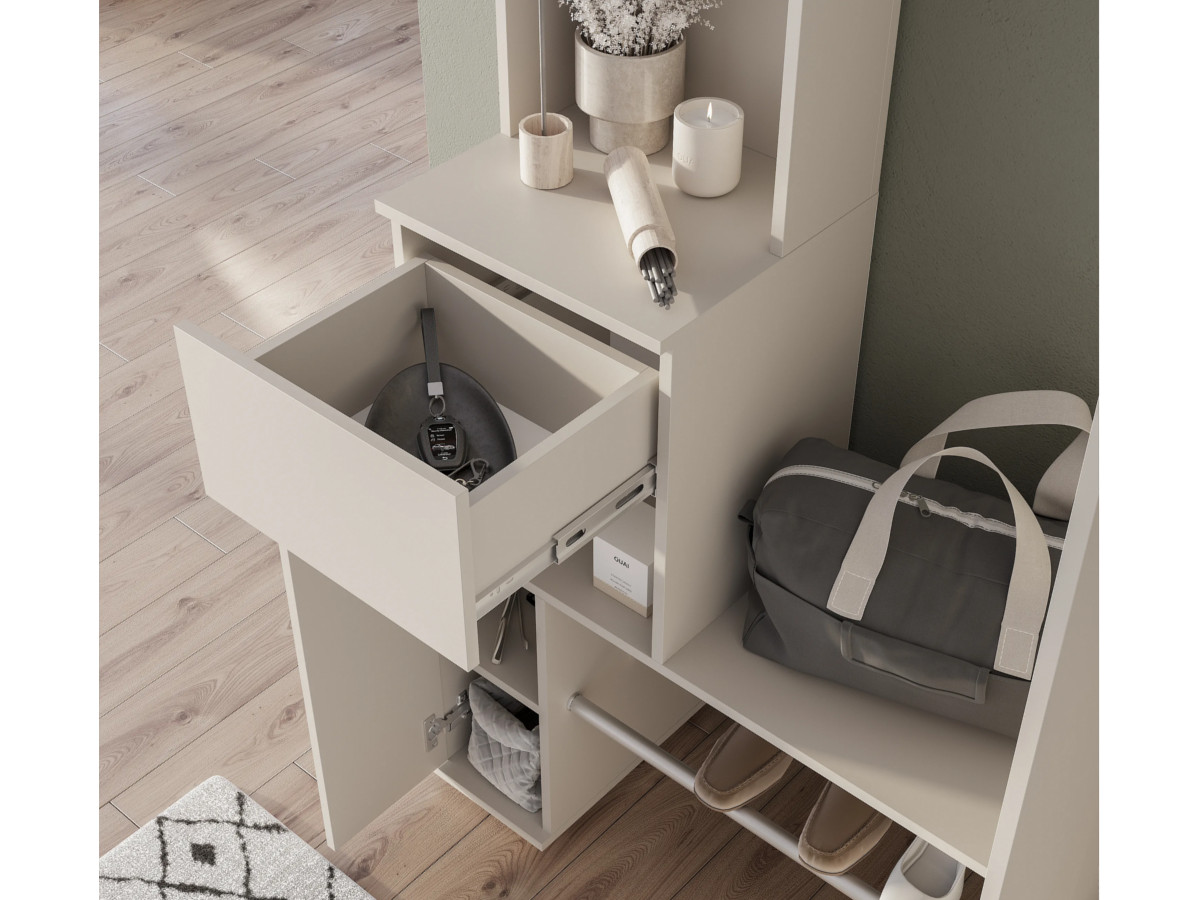 - Максимальная нагрузка на ящик - 5 кг, на штангу/полку - 10 кг, на крючок - 3 кг.