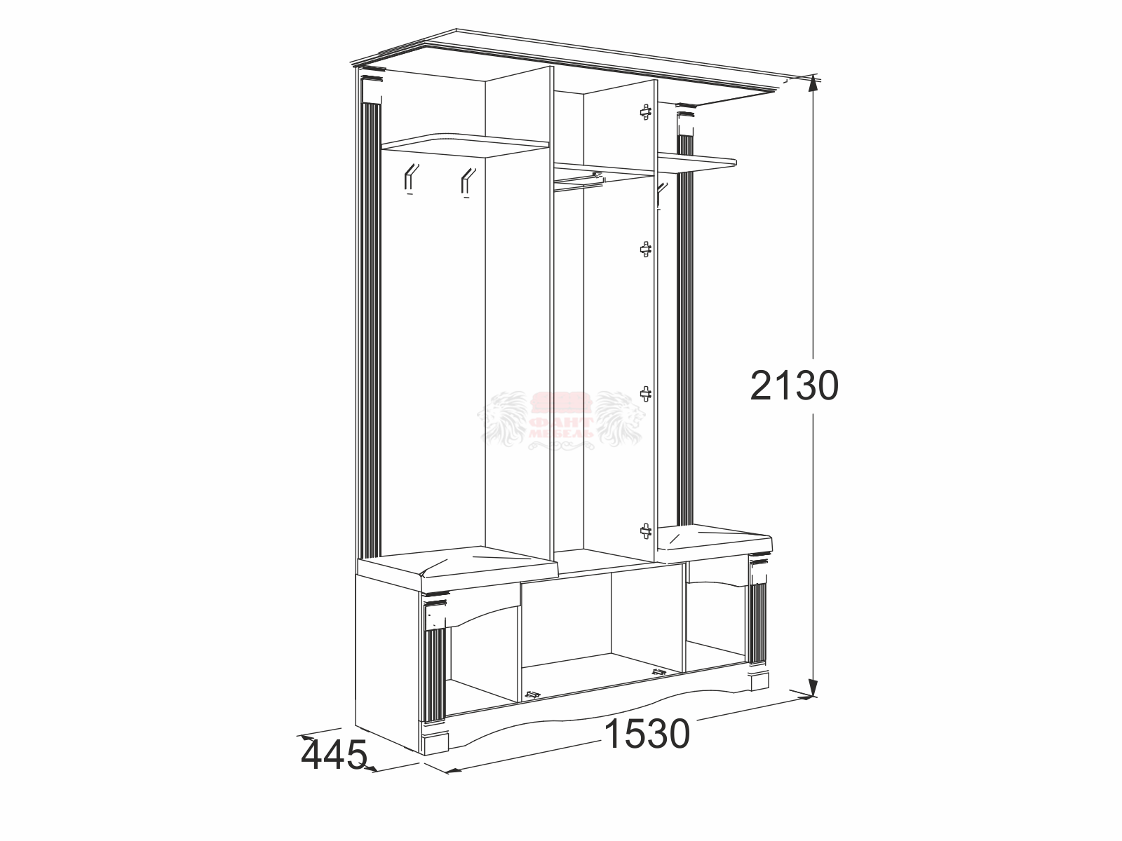габариты (ВхШхГ): 2130х1530х445 мм