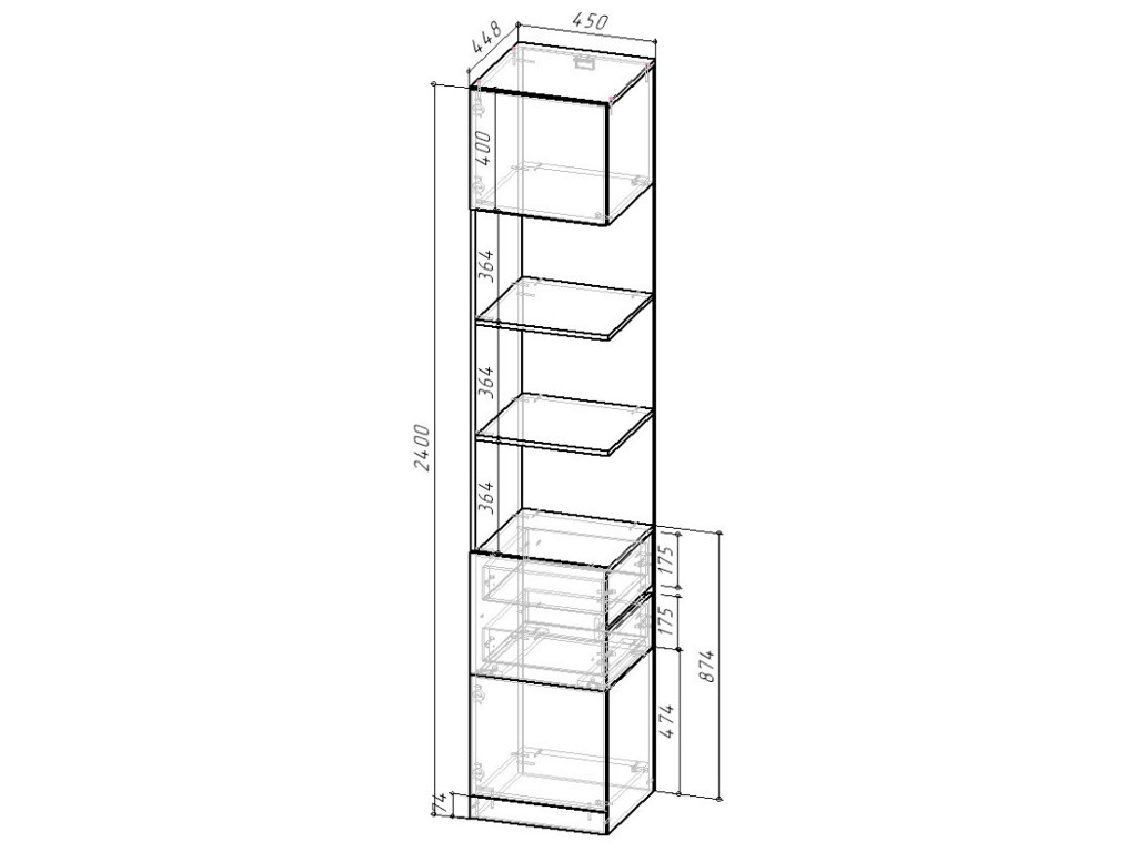 Габаритные размеры: Д.450 х В.2400 х Г.450 мм.