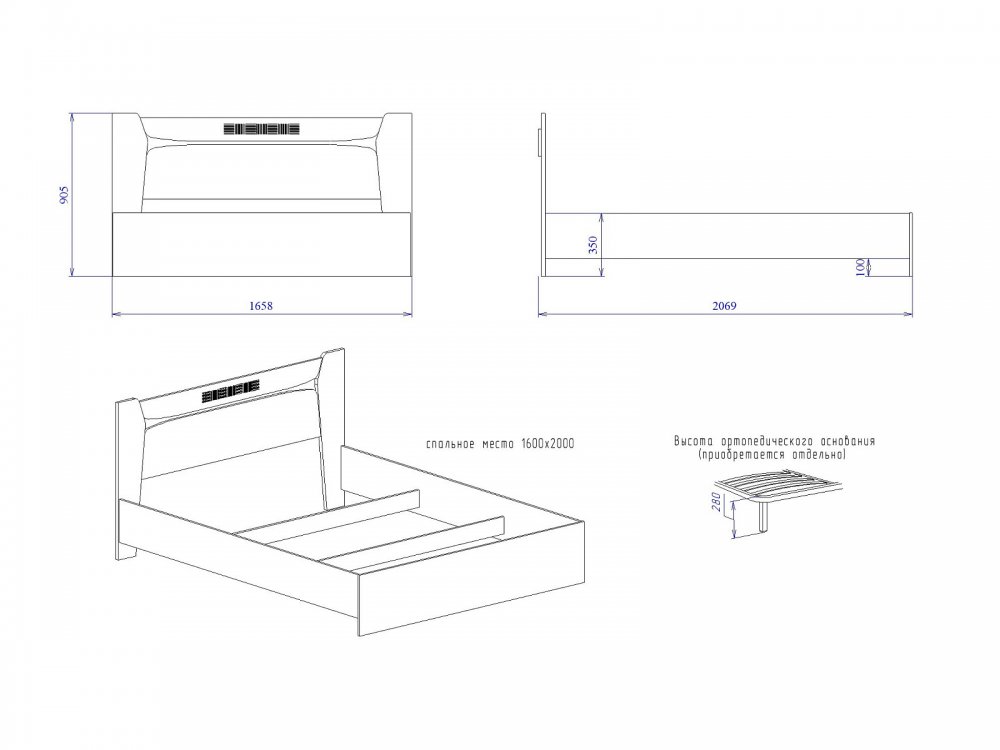 Спальное место: 1600*2000 мм