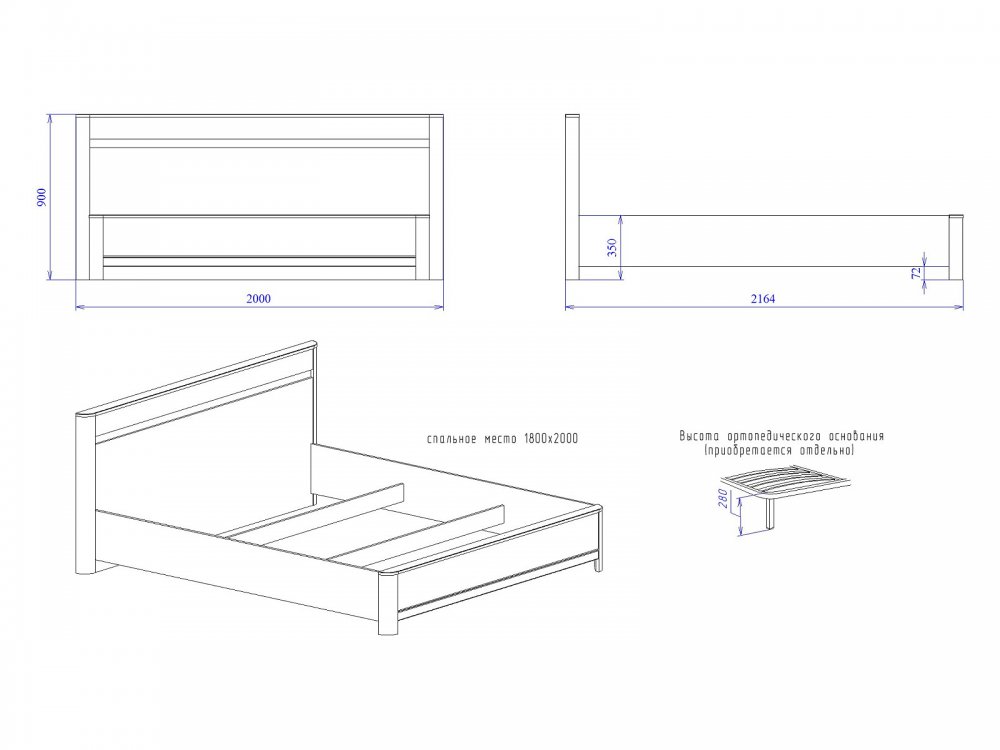 Размер ШхГхВ: 2000*2164*900 мм
