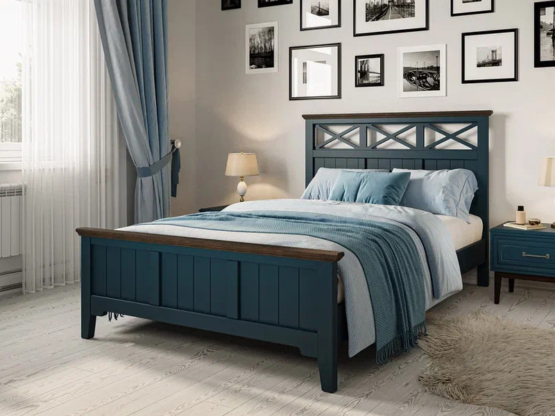 - Кровать Грация-5 1600 Сапфировый с карнизом Дуб коньяк