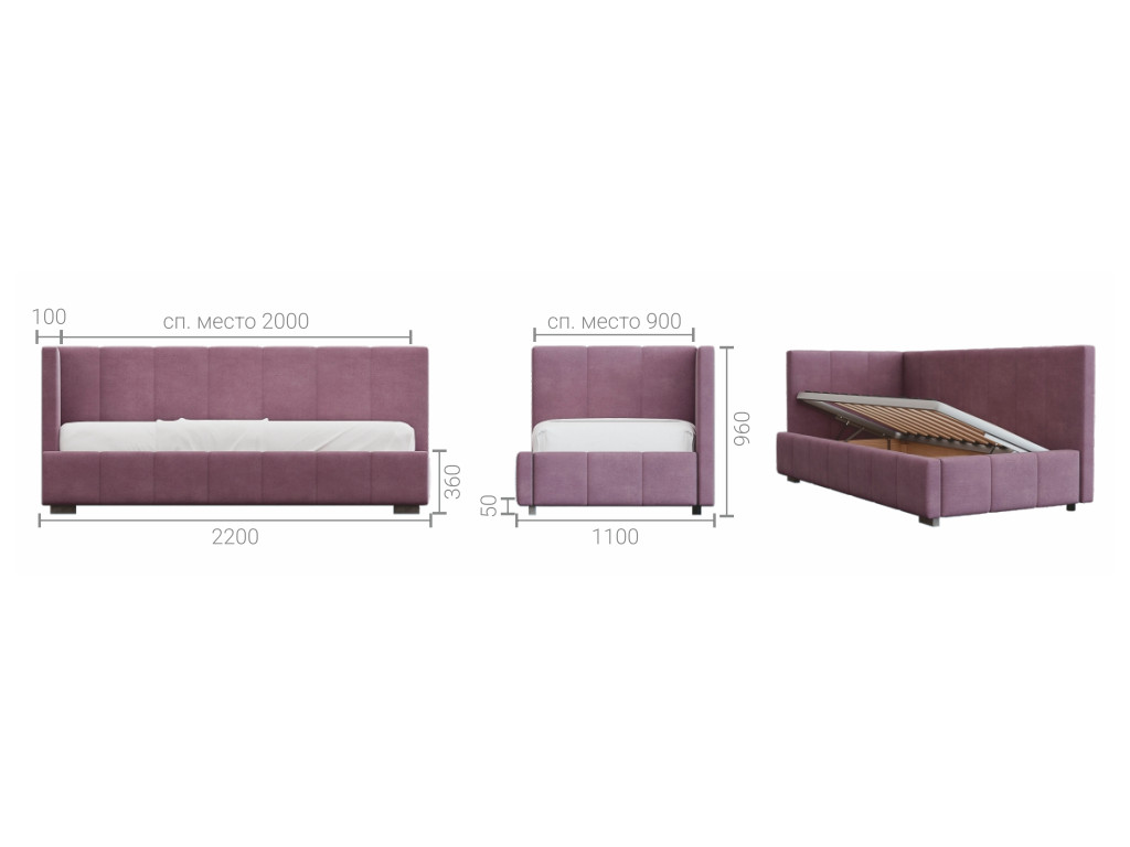 Кровать имеет подъемное ортопедическое основание с дном из МДФ.