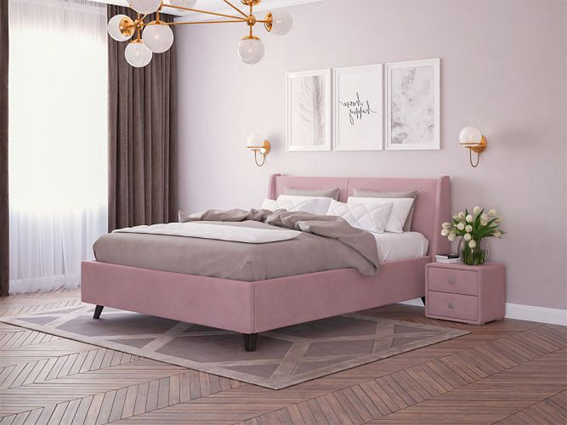 - Кровать Лорен с ПМ 1600х2000 мм микровелюр розовый