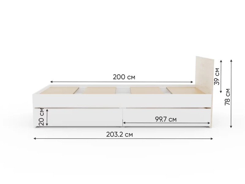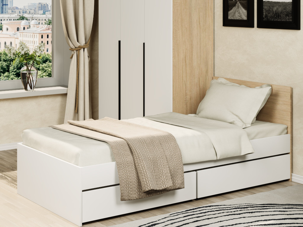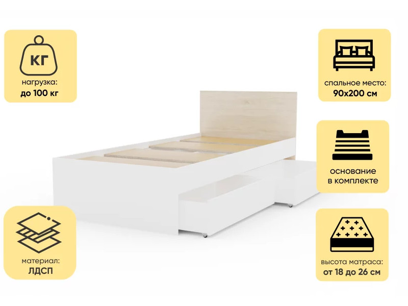 - Кровать Монблан с ящиками 90х200 см Белый Шагрень