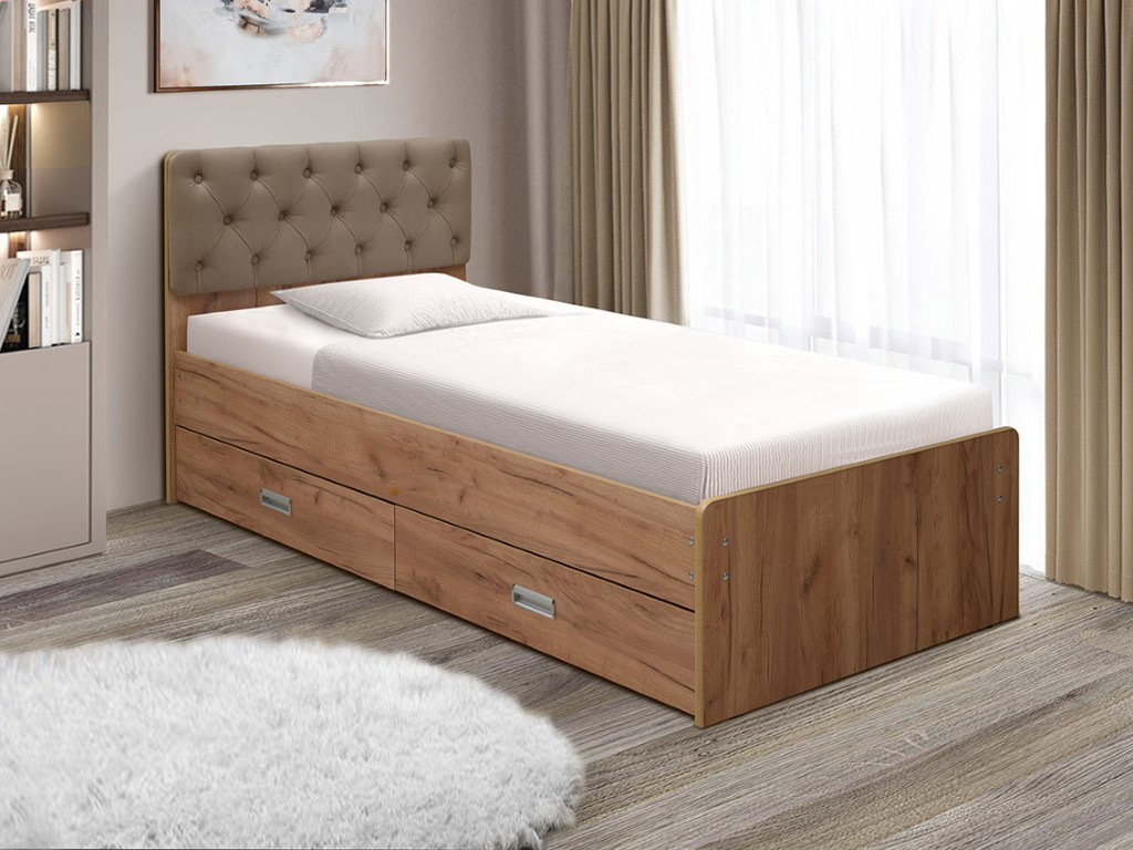 Кровать одинарная №7 с ящиками 900х2000 мягкая спинка каретная стяжка