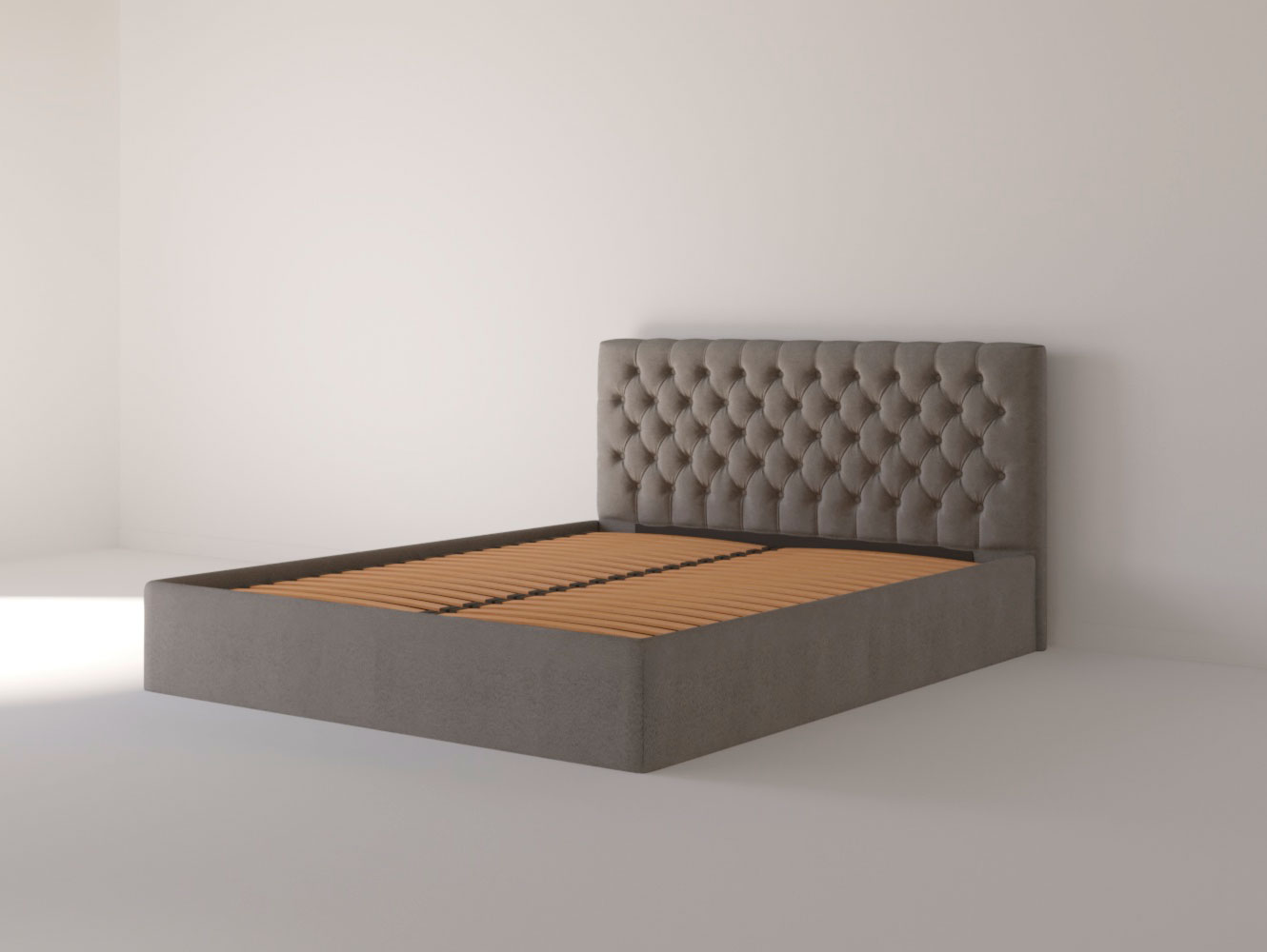Изголовье: Изголовье оформлено с эффектом каретной стяжки, что создает эффектный акцент в дизайне. Этот элемент не только эстетичен, но и функционален, обеспечивая поддержку во время чтения или отдыха.