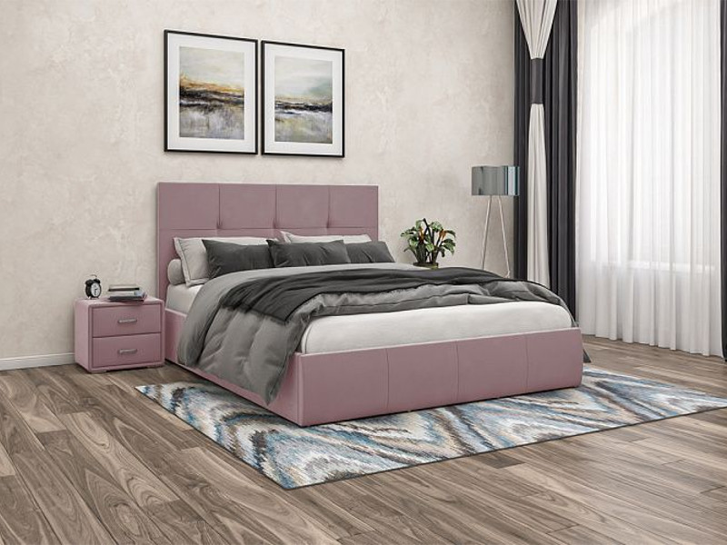 - Кровать Твист с ПМ 1600х2000 мм микровелюр розовый