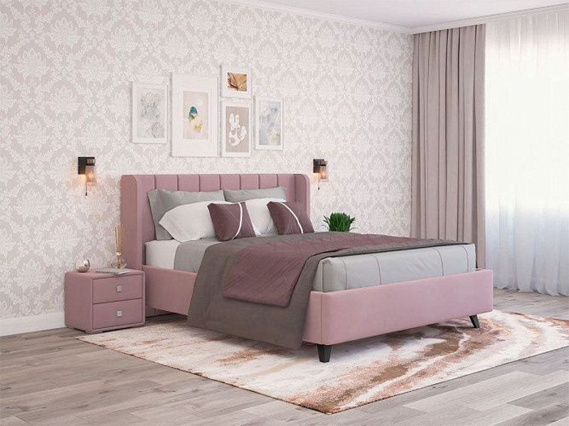 - Кровать Виола с ПМ 1400х2000 мм микровелюр розовый