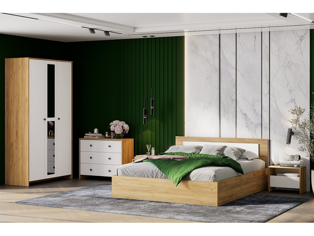 - Спальня Дольче Дуб Золотой/Белый
