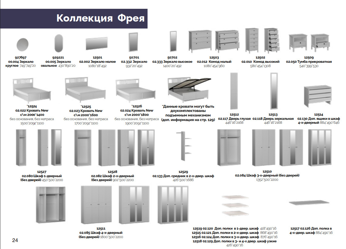Цена за комплект: Комод малый, Кровать 1400, основание 1400, Тумба прикроватная