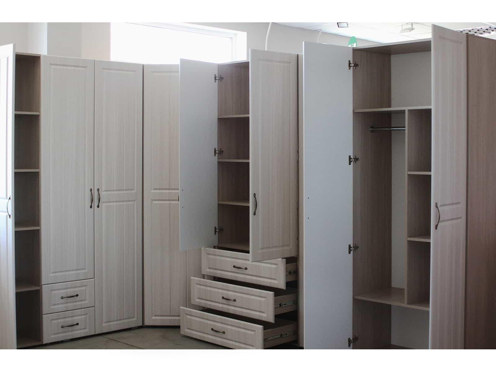 Состав комплекта: зеркало навесное-800, стол туалетный, шкаф 3-х ств. с зеркалом, шкаф угловой, шкаф универсальный, тумба прикроватная , кровать-1400 , орт. основание 1400х2000, опоры основания
